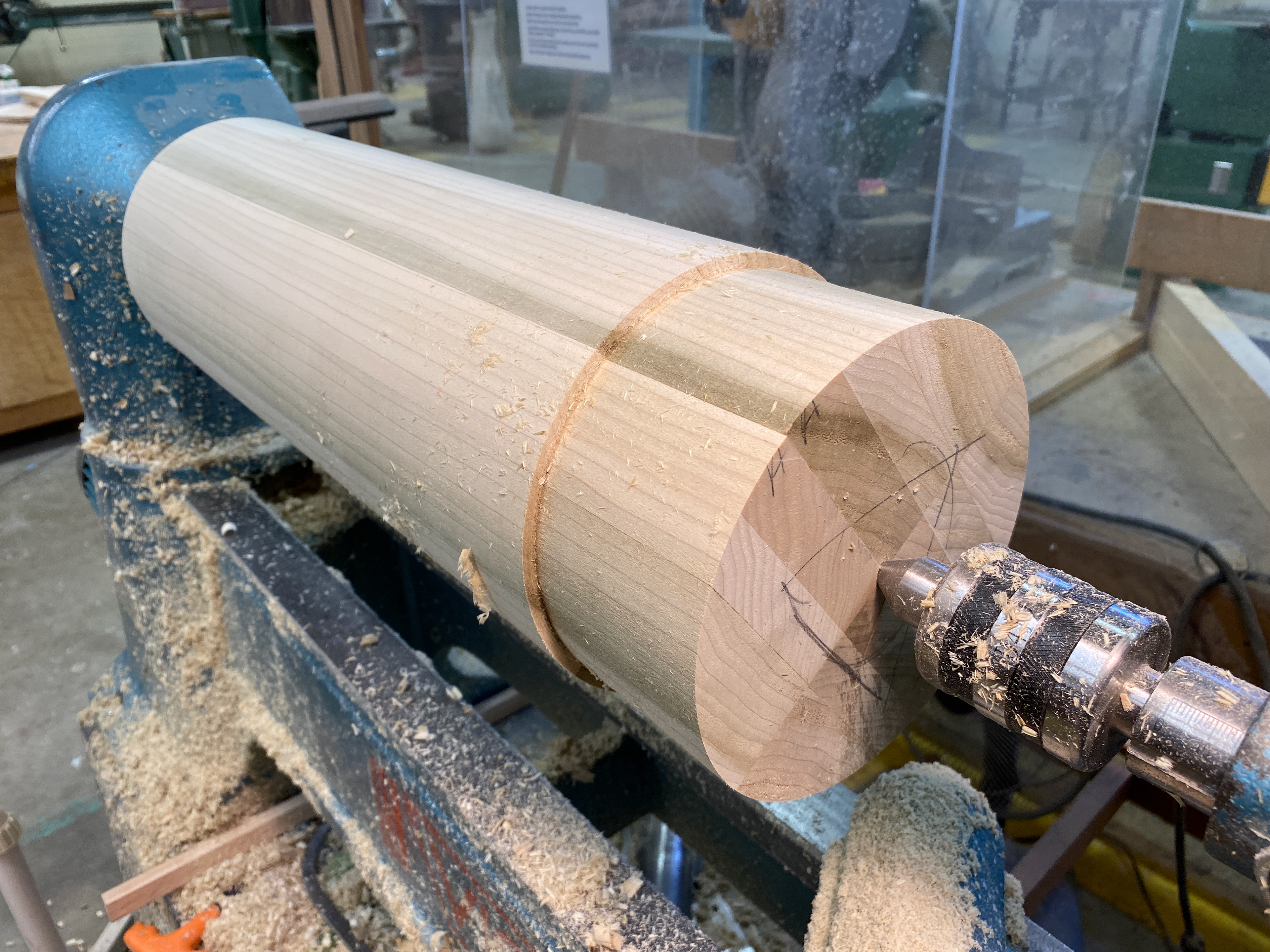 As for the manufacturing, I used a lathe to round off the table legs. These were paper jointed before in order to split them afterwards to get four perfectly quarter circled legs.